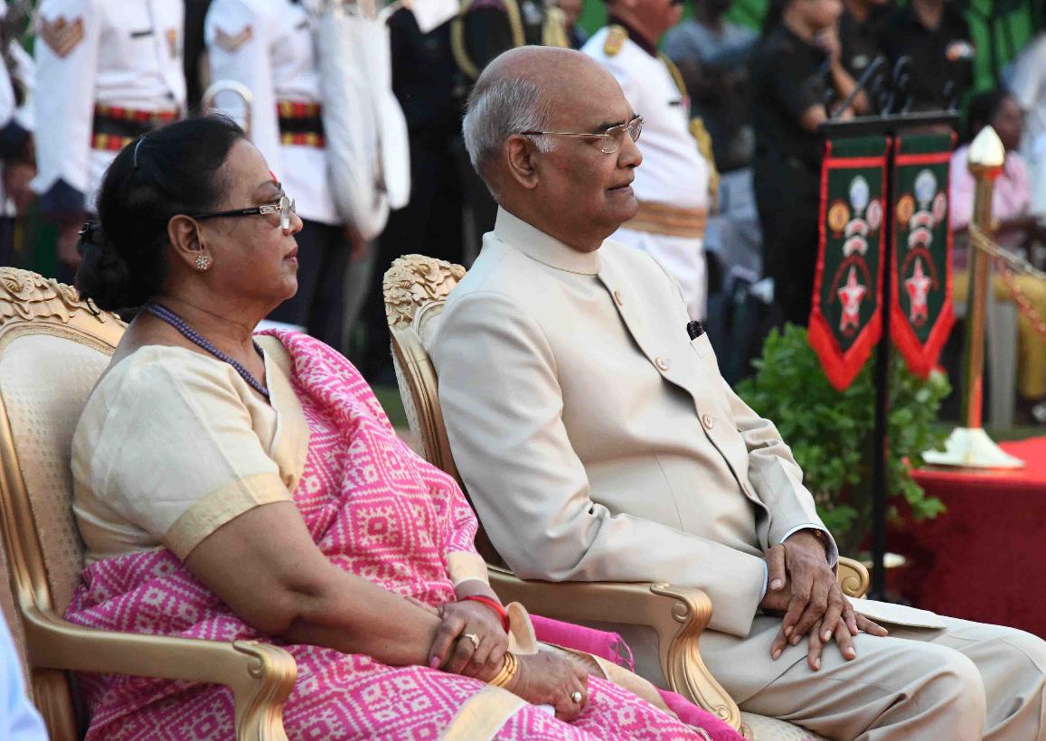 The President of India, Shri Ram Nath Kovind and the First Lady of India, Smt. Savita Kovind witnessing the Ceremonial Change of Guard Ceremony, at Rashtrapati Bhavan on October 22, 2017.
