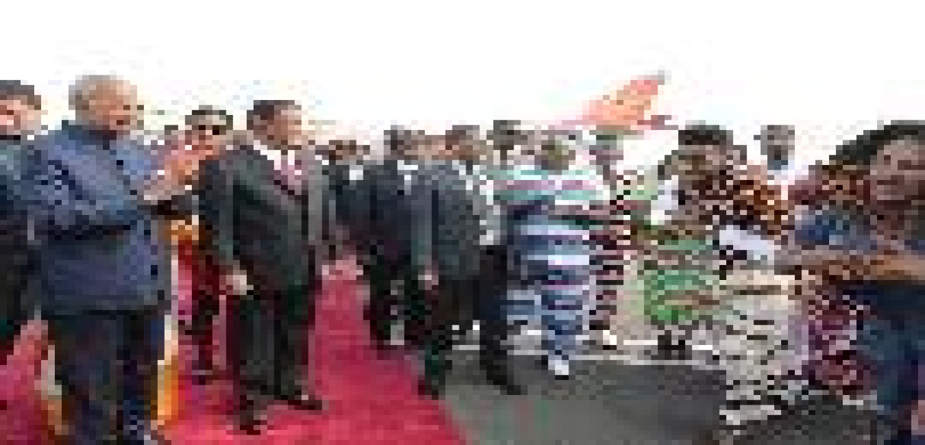 The President of India, Shri Ram Nath Kovind and the First Lady of India, Smt. Savita Kovind being received by the Prime Minister of Djibouti, H.E. Mr. Abdoulkader Kamil Mohamed with other officials, on their arrival, at Djibouti - Ambouli International Airport on October 03, 2017.