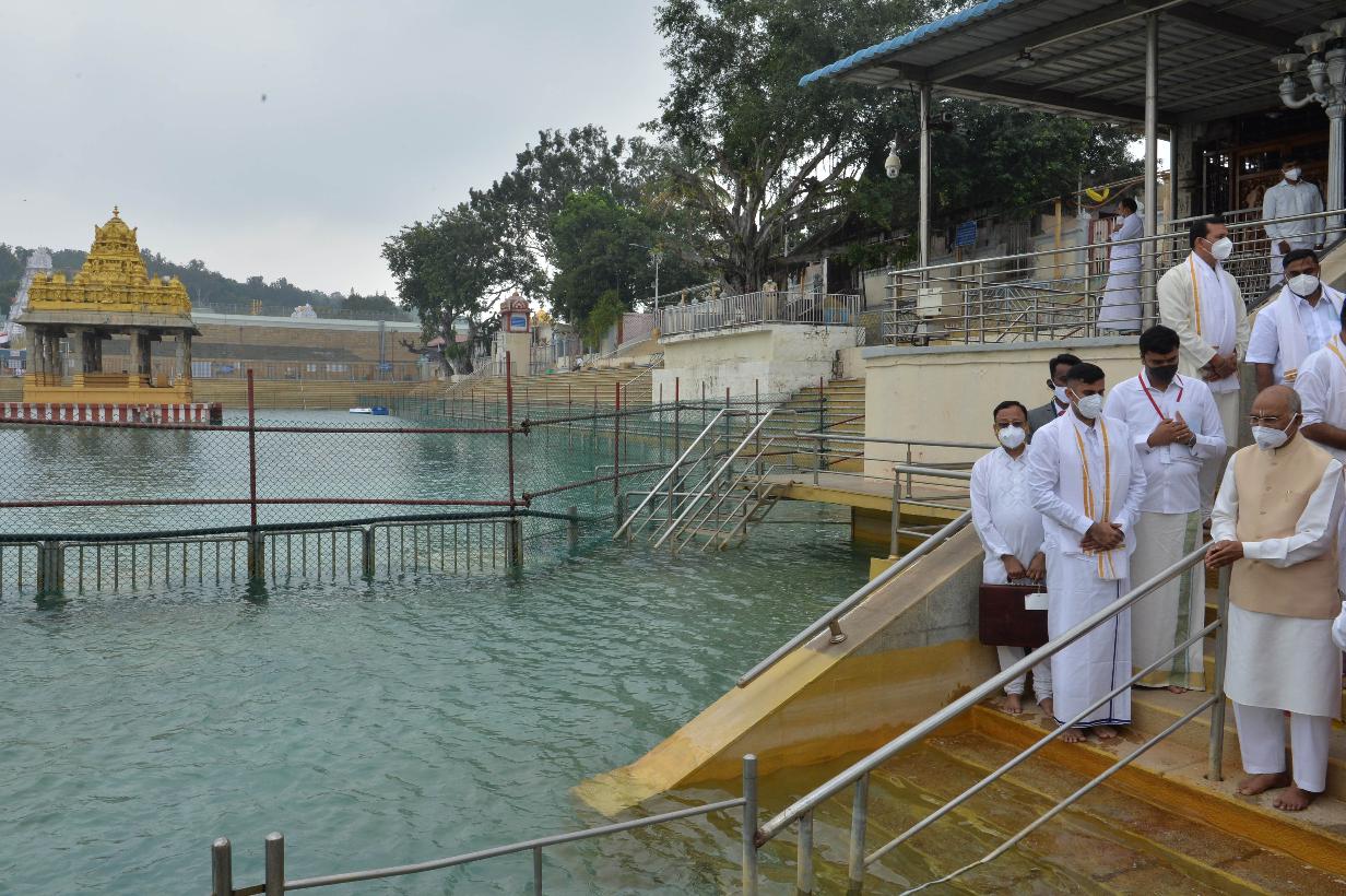 The President of India, Shri Ram Nath Kovind offered prayers at the Sri Venkateswara Swamy Temple, in Tirumala, Andhra Pradesh on November 24, 2020.