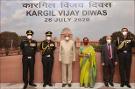 The President of India, Shri Ram Nath Kovind presenting a cheque of Rs 20 lakh to the Army Hospital (Research and Referral), Delhi to buy equipment to combat the Covid-19 pandemic on the 21st anniversary of Vijay Diwas, at Rashtrapati Bhavan on July 26, 2020.