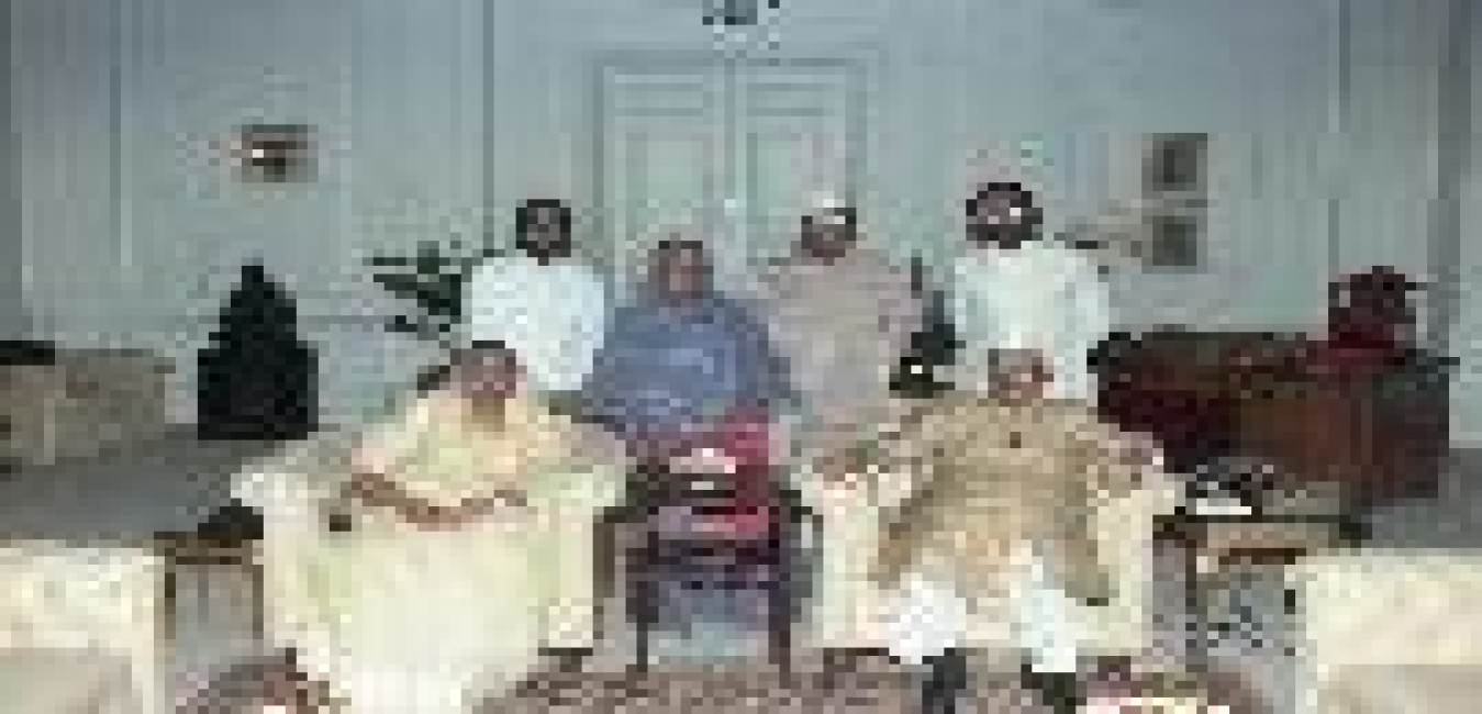 The President of India, Dr. Shankar Dayal Sharma meeting with Begum Aisha Qurja with others at Rashtrapati Bhavan in New Delhi on July 24, 1997