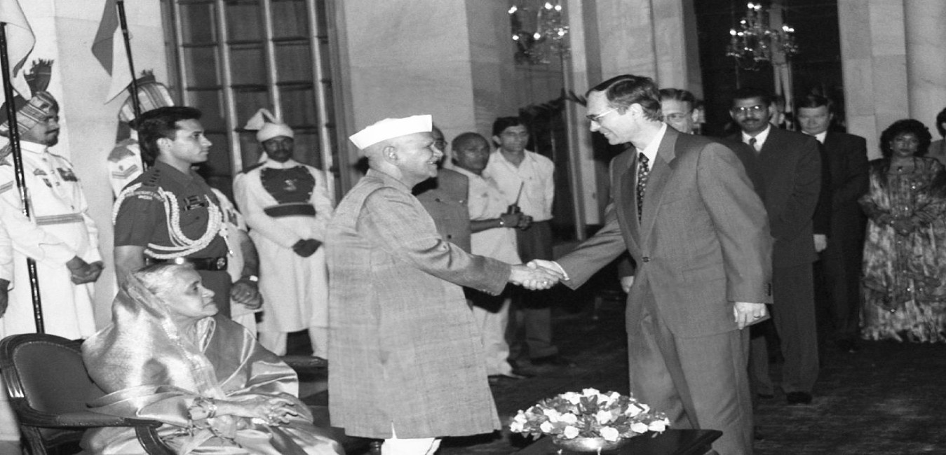 The President of India, Dr. Shankar Dayal Sharma meeting with Heads of Diplomatic Missions and their Spouses, during 'At Home' at Rashtrapati Bhavan in New Delhi on July 23, 1997