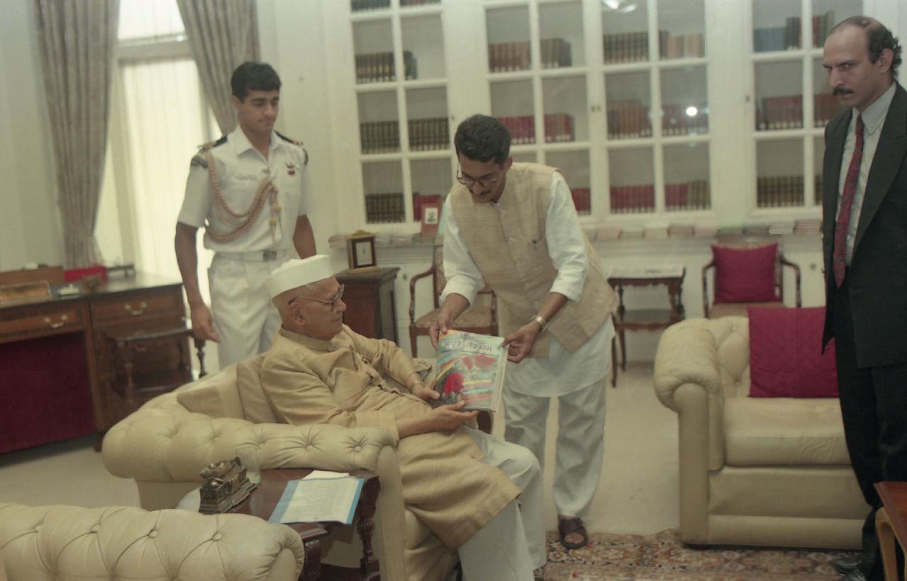 The President of India, Dr. Shankar Dayal Sharma meeting with Mr. Meena DCO at Rashtrapati Bhavan in New Delhi on July 24, 1997