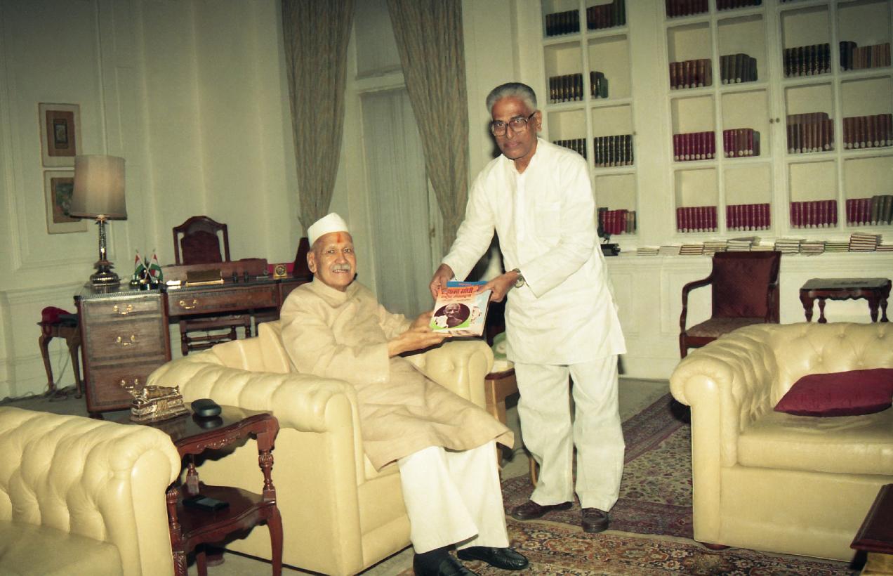 The President of India, Dr. Shankar Dayal Sharma meeting with Shri A.T. Patil, Ex-MP at Rashtrapati Bhavan in New Delhi on August 23, 1995.
