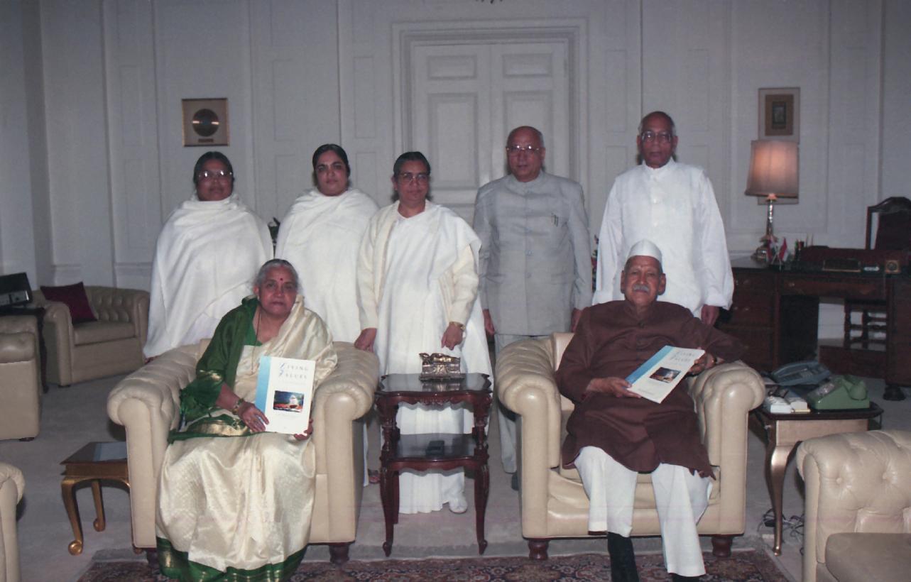 The President of India, Dr. Shankar Dayal Sharma receiving a copy of the book "Living Values: A Guide Book" from Brahma Kumari Asha with others at Rashtrapati Bhavan in New Delhi on December 13, 1995.