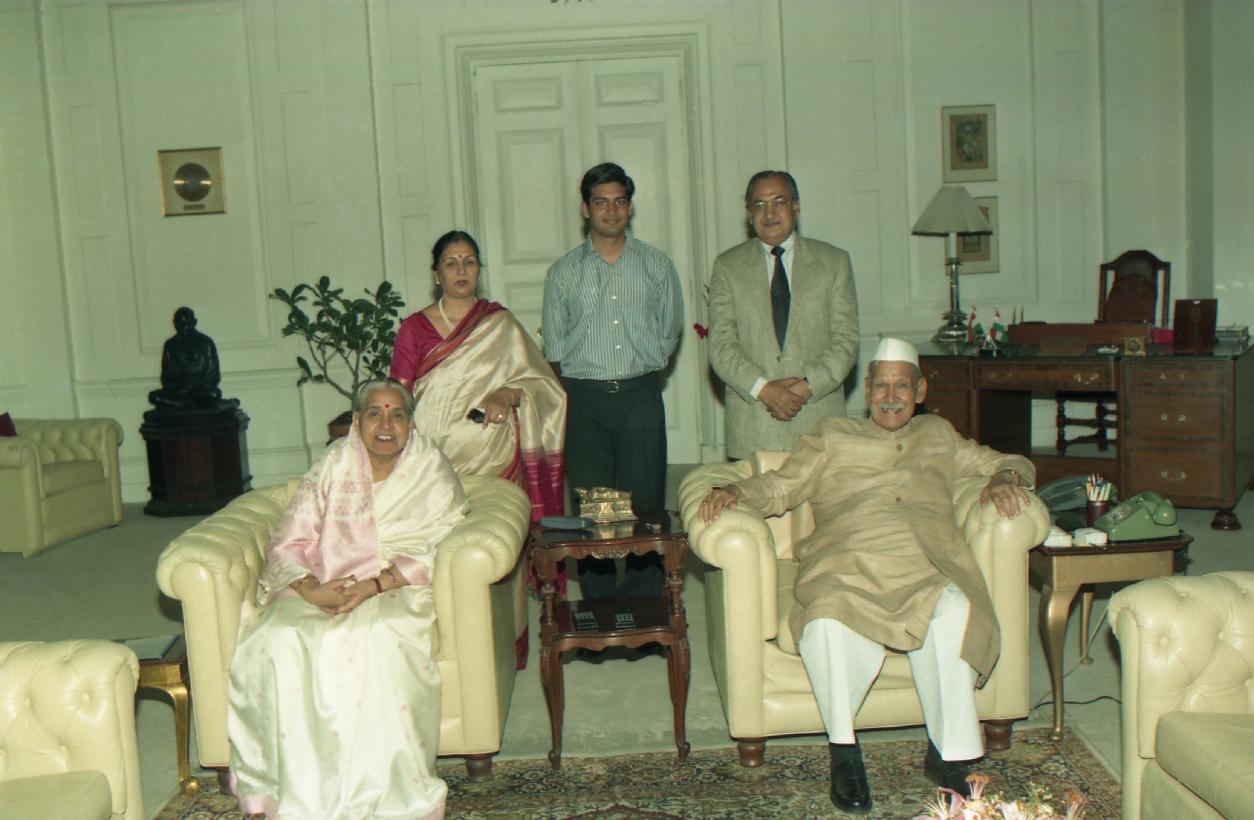 The President of India, Dr. Shankar Dayal Sharma meeting with Shri D.P. Wadhwa and his wife at Rashtrapati Bhavan in New Delhi on March 28, 1997.