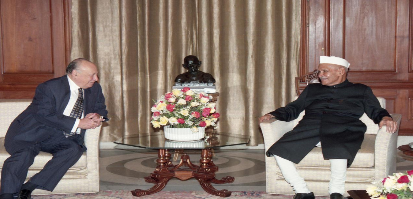 The President of the Republic of Cyprus, HE Mr. Glafcos Clerides calling on the President of India, Dr. Shankar Dayal Sharma, at Rashtrapati Bhavan in New Delhi on February 10, 1997.