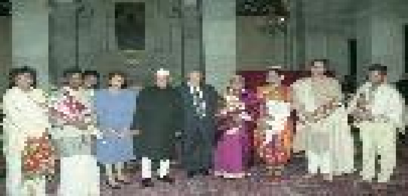 The President of India, Dr. Shankar Dayal Sharma hosting Banquet in honour of the President of the Republic of Cyprus, HE Mr. Glafcos Clerides and Mrs. Lilla-Irene Clerides, and witnessing cultural programme, at Rashtrapati Bhavan in New Delhi on February 10, 1997.