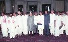 The President of India, Dr. Shankar Dayal Sharma administering oath to Council of Ministers, at a Swearing-in Ceremony, at Rashtrapati Bhavan in New Delhi on June 28, 1996.