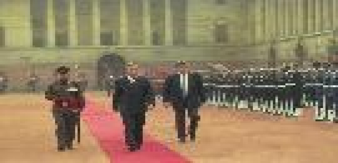 The President of India, Dr. Shankar Dayal Sharma receiving H.E. Mr. Islom Karimov, President of the Republic of Uzbekistan, at the Ceremonial Reception, at Rashtrapati Bhavan in New Delhi on January 03, 1994.