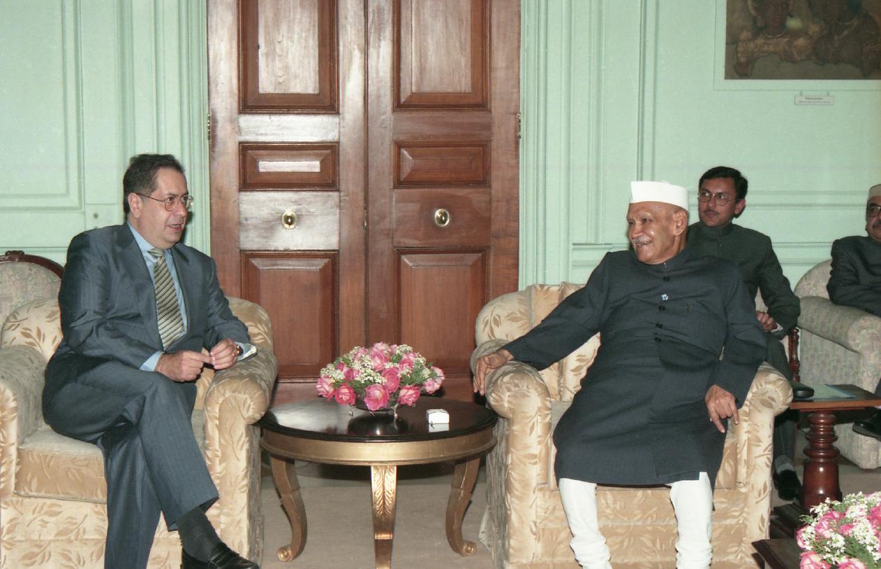 The Minister of Foreign Affairs of Portugal, HE Dr. Jaime Gama calling on the President of India, Dr. Shankar Dayal Sharma, at Rashtrapati Bhavan in New Delhi on February 06, 1997.