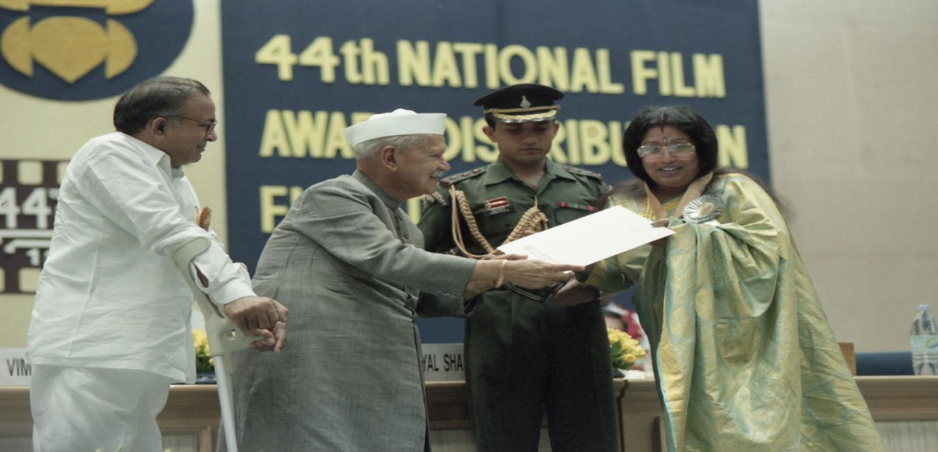 The President of India, Dr. Shankar Dayal Sharma presenting National Films Awards at Vigyan Bhavan in New Delhi on July 15, 1997