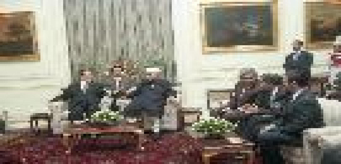 The President of India, Dr. Shankar Dayal Sharma with H.E. Mr. Jiang Zemin, President of the People's Republic of China at Farewell tete-a-tete at Rashtrapati Bhavan in New Delhi on November 30, 1996.