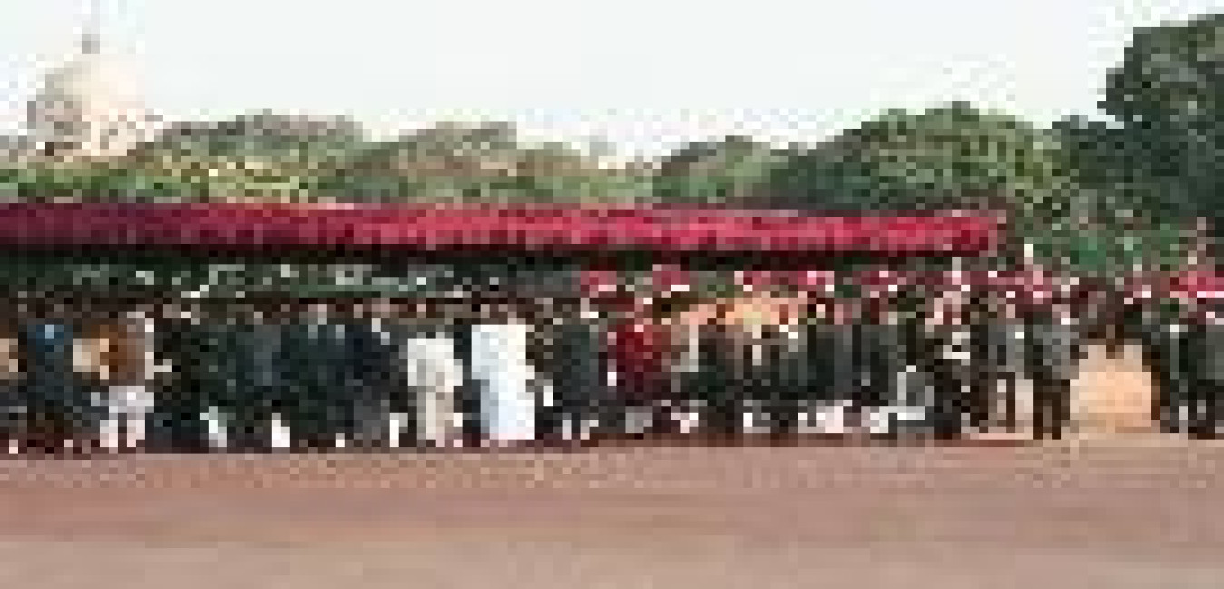 The President of India, Dr. Shankar Dayal Sharma during the Ceremonial Reception of H.E. Mr. Jiang Zemin, President of the People's Republic of China at Rashtrapati Bhavan in New Delhi on November 28, 1996.