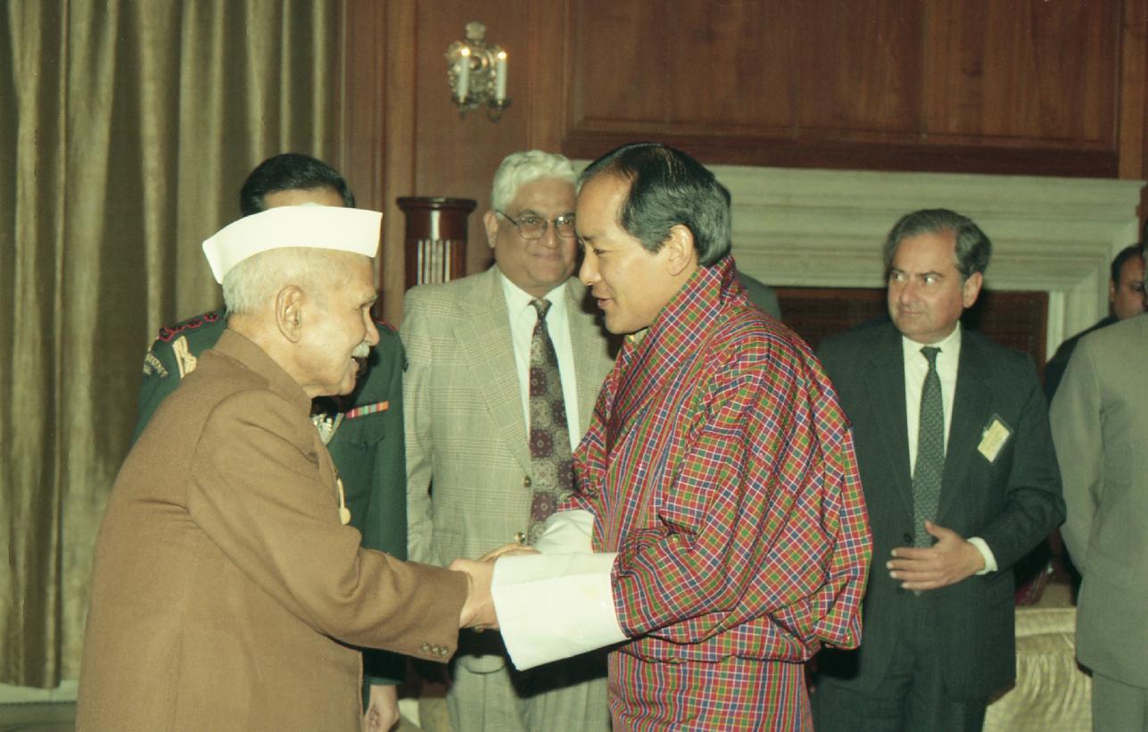 The President of India, Dr. Shankar Dayal Sharma meeting with His Majesty Jigme Singye Wangchuck, King of Bhutan, at Rashtrapati Bhavan, in New Delhi on March 04, 1996.