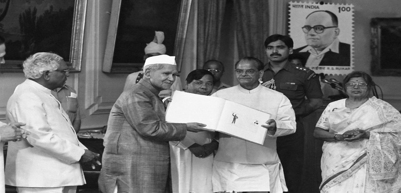 The President of India, Dr. Shankar Dayal Sharma releasing a postal Stamp on Late Shri R.S. Ruikar at Rashtrapati Bhavan in New Delhi on May 01, 1995.