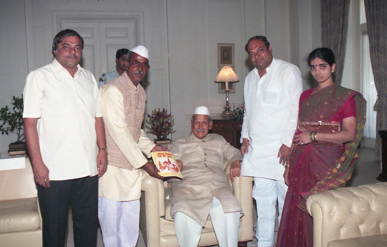 The President of India, Dr. Shankar Dayal Sharma receiving a copy of the book "Pariwar Niyojan Waqat Ki Pukar" from Shri Najir A. Mohd. Sikandar with others at Rashtrapati Bhavan in New Delhi on March 11, 1996.