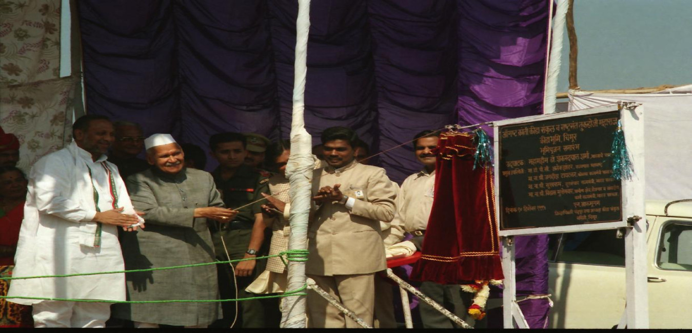 The President of India, Dr. Shankar Dayal Sharma unveiling the plaque to lay the foundation stone of Rashtra Sant Tukdoji Maharaj stadium and August Krant Spors Complex, at Chimur, in Maharashtra on December 10, 1995.