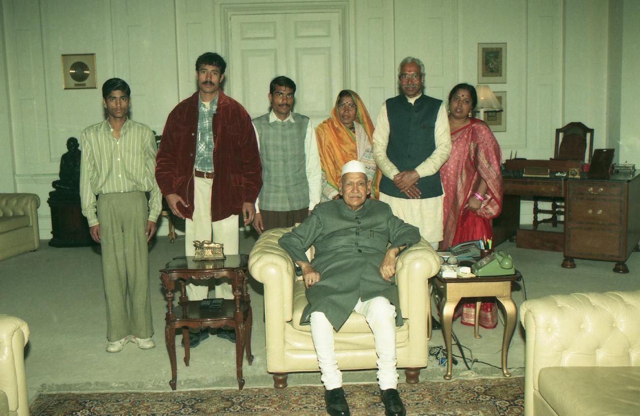 The President of India, Dr. Shankar Dayal Sharma meeting with Shri Prem Singh Patel with others at Rashtrapati Bhavan in New Delhi on February 05, 1997.