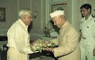 The President of India, Dr. Shankar Dayal Sharma meeting with former President of India, Shri R. Venkataraman, at Rashtrapati Bhavan in New Delhi on October 13, 1995.