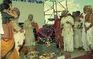 The President of India, Dr. Shankar Dayal Sharma unveiling the Statue of Sri Adi Sankara and offering flowers at the Statue, at Kancheepuram, Tamil Nadu on September 20, 1996.