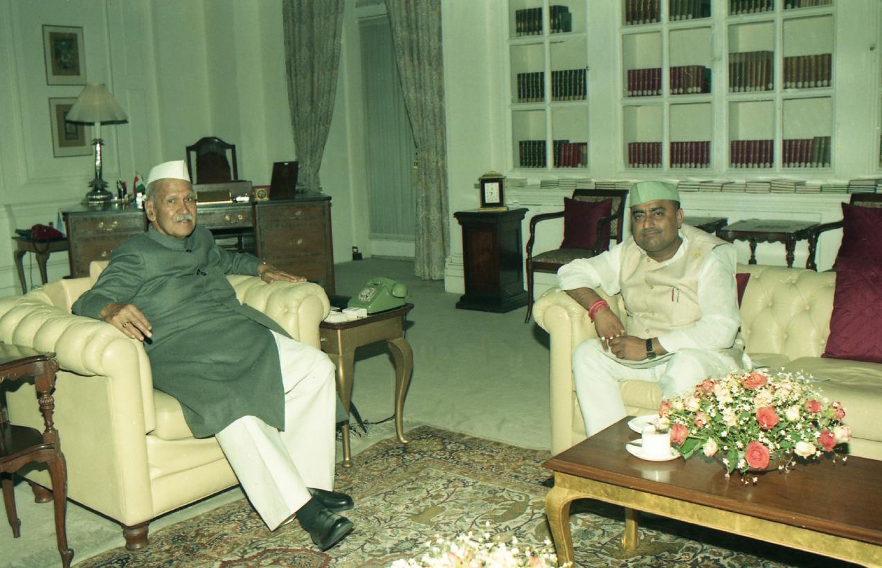 The President of India, Dr. Shankar Dayal Sharma meeting with Shri Ravinder Kumar Pandey, MP at Rashtrapati Bhavan in New Delhi on March 12, 1997.