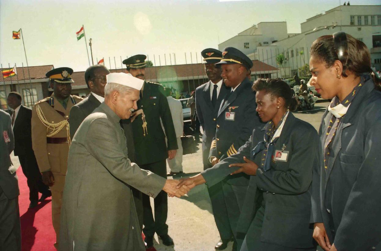 The President of India, Dr. Shankar Dayal Sharma being received, at Hwange airport on June 08, 1995.