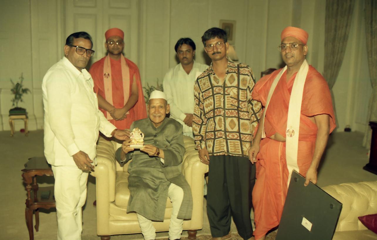 The President of India, Dr. Shankar Dayal Sharma meeting with Shri Shanti Lal Patel, MP(LS) with others from Gujarat at Rashtrapati Bhavan in New Delhi on June 12, 1996.
