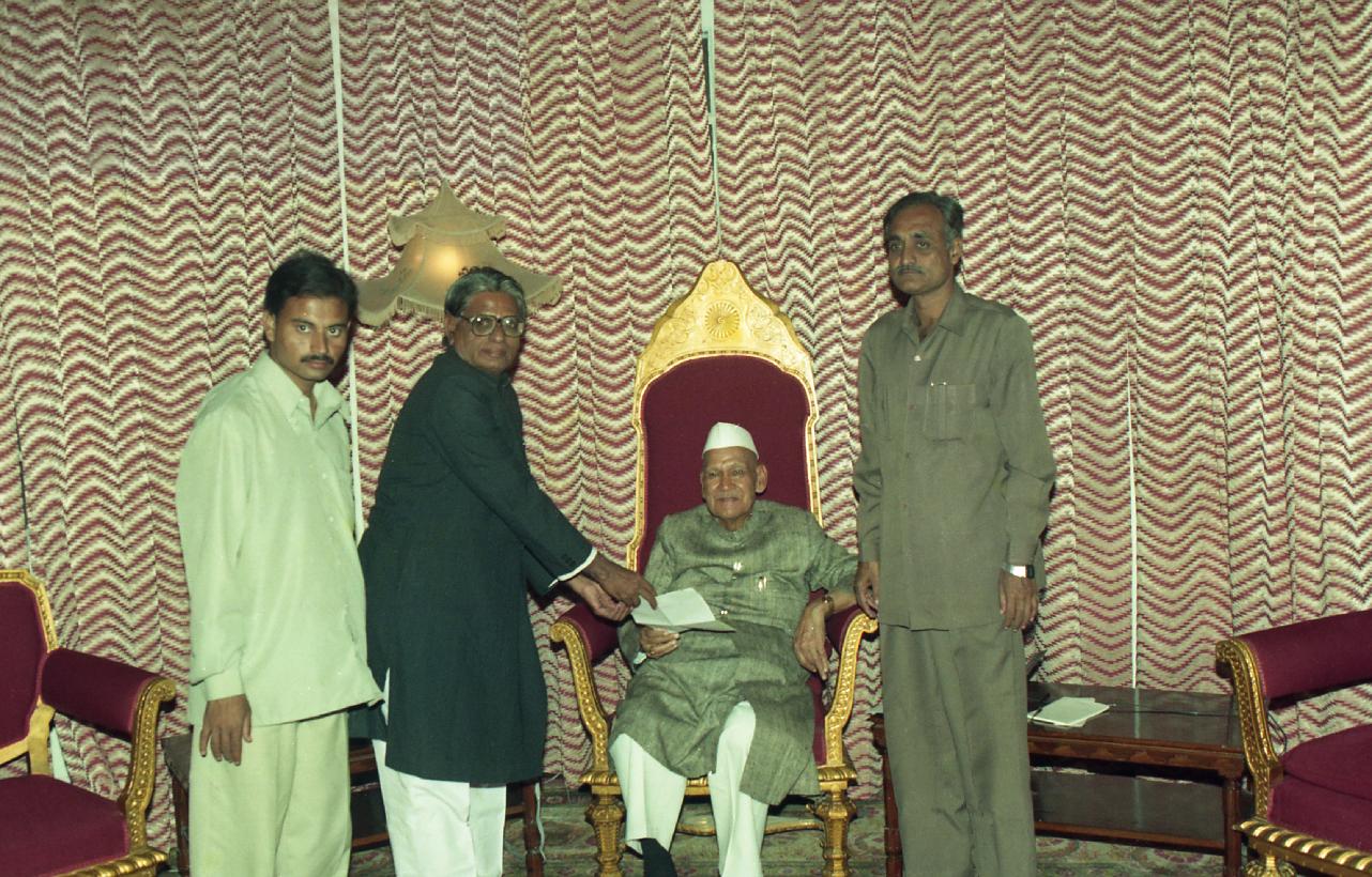 The President of India, Dr. Shankar Dayal Sharma meeting with Dr. Syed Dasthagir Pasha, Vice-President, Ghalib Academy, Hyderabad with others, at Rashtrapati Nilayam, in Secunderabad, Andhra Pradesh on November 03, 1996.