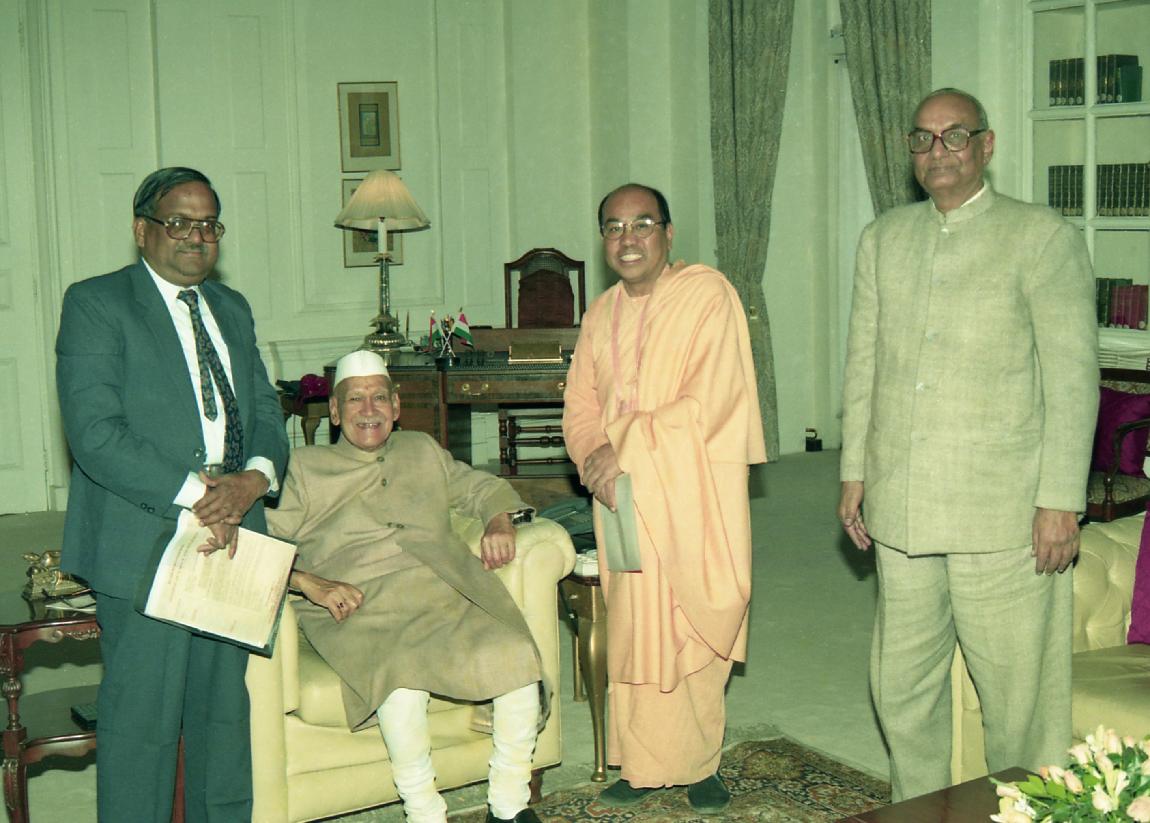 The President of India, Dr. Shankar Dayal Sharma meeting with Dr. T.D. Singh with others at Rashtrapati Bhavan in New Delhi on November 14, 1996.