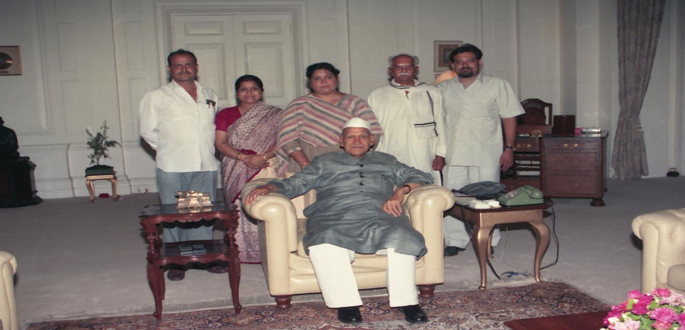 The President of India, Dr. Shankar Dayal Sharma meeting with Kum. Uma Yadav, MLA (MP) with others at Rashtrapati Bhavan in New Delhi on June 10, 1996.