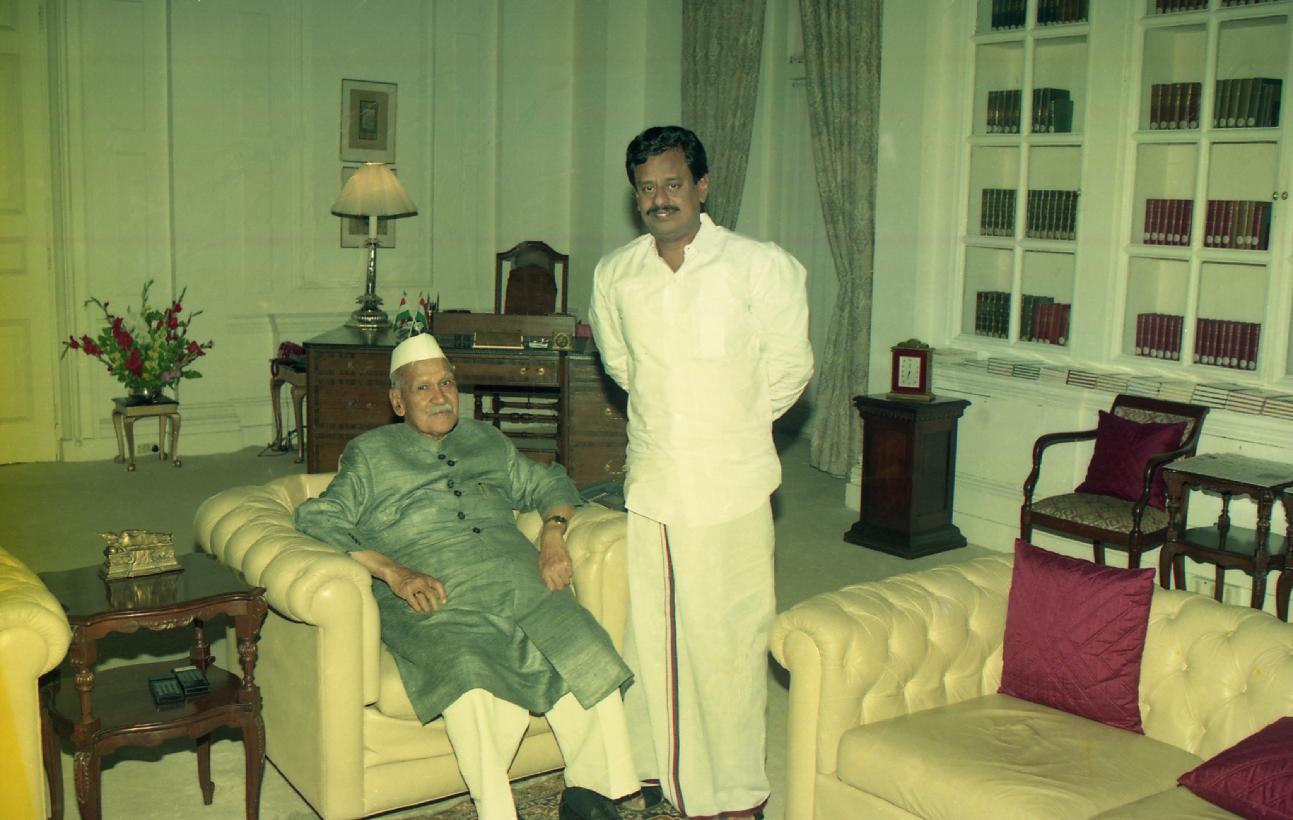 The President of India, Dr. Shankar Dayal Sharma meeting with Shri V.M.C. Shivkumar, Speaker Pondicherry Assembly at Rashtrapati Bhavan in New Delhi on July 22, 1996.