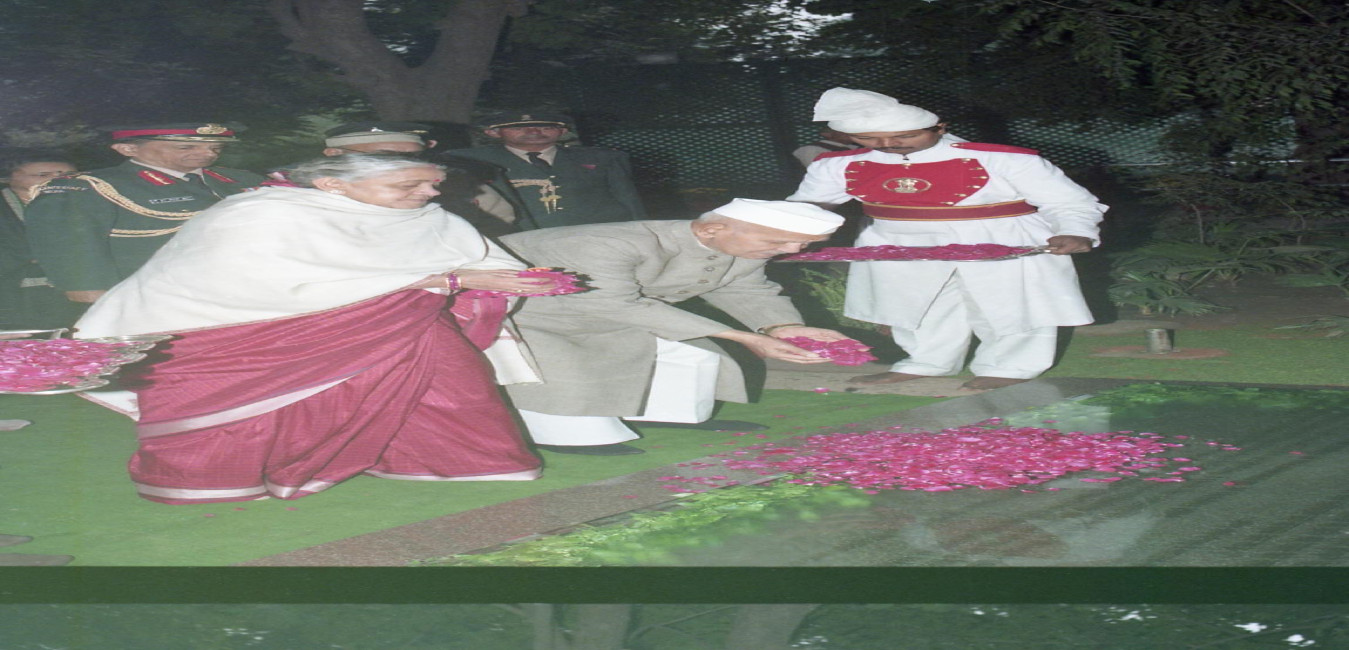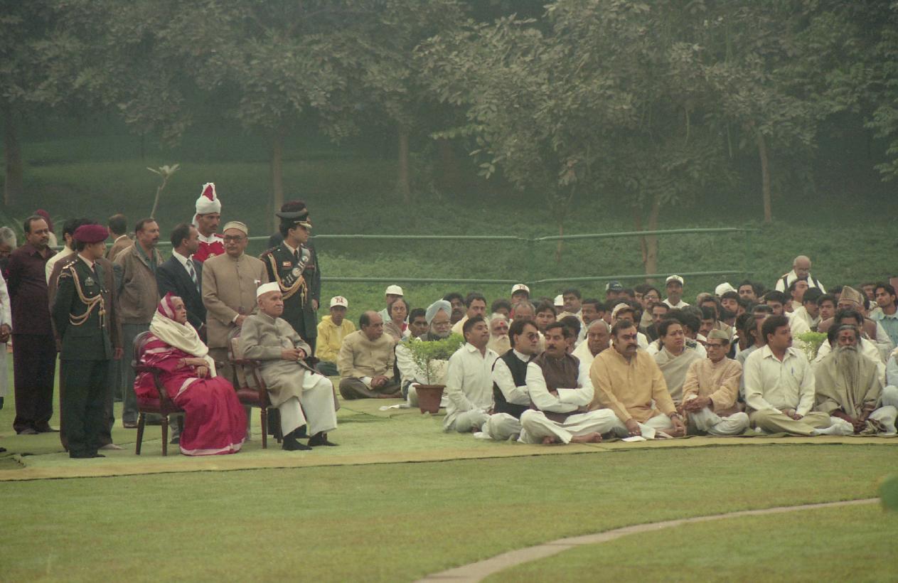 The President of India, Dr. Shankar Dayal Sharma paying floral tributes at the Samadhi of late Smt. Indira Gandhi, on her birth anniversary, at Shakti Sthal in New Delhi on November 19, 1996.