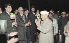 The President of India, Dr. Shankar Dayal Sharma and Smt. Vimala Sharma being received by the Governor of Tamil Nadu, Shri Krishan Kant and Chief Minister of Tamil Nadu, Shri M. Karunanidhi , at Thiruvaiyaru, in Tamil Nadu on January 20, 1997.