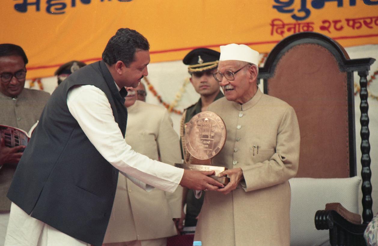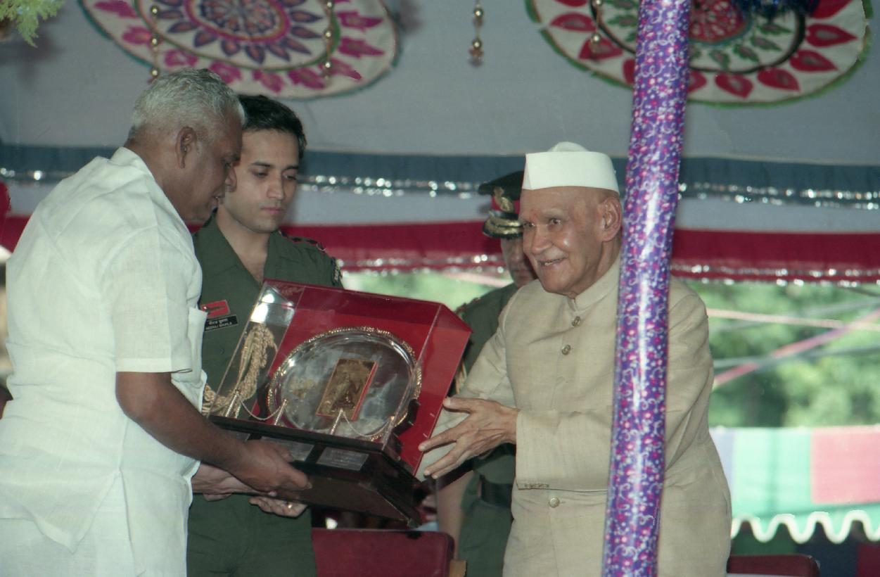 The President of India, Dr. Shankar Dayal Sharma during the presentation of Bhartiya Vidya Bhavan's publications Kamba Ramayanam, an English prose rendering by Dr. HV Hande and Five hundred thousandth copy of Ramayana & Mahabharata by Shri C Rajagopalchari, at Chennai, in Tamil Nadu on January 21, 1997.
