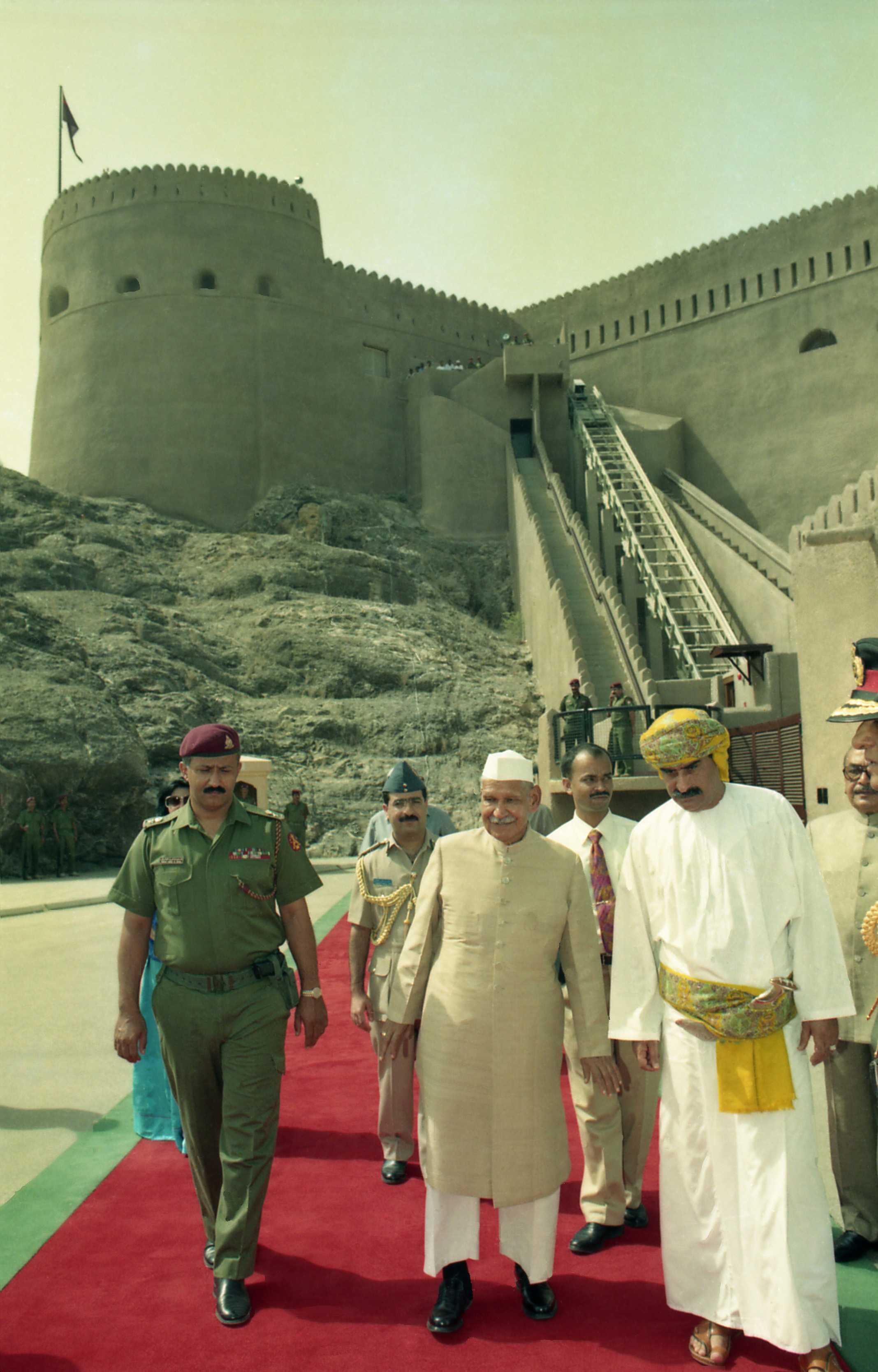 The President of India, Dr. Shankar Dayal Sharma visiting the Al Jalali Fort, in Muscat, Oman on October 04, 1996.