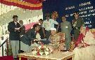 The President of India, Dr. Shankar Dayal Sharma inaugurating the 150th Aradhana Festival of Sri Thiagabrahma and presenting copy of the Souvenir in commemoration of 150th Aradhana Festival to Shri TT Vasu, at Thiruvaiyaru, in Tamil Nadu on January 20, 1997.