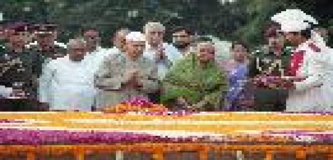 The President of India, Dr. Shankar Dayal Sharma paying homage at the Samadhi of Shri Lal Bahadur Shastri on the occasion of his Birth Anniversary, at Vijay Ghat in Delhi on October 02, 1996.