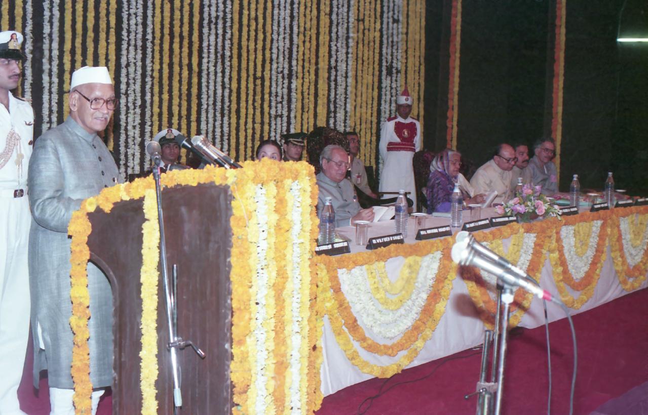 The President of India, Dr. Shankar Dayal Sharma addressing the Special Convocation of Sampoornanand Sanskrit Vishwa Vidyalaya, at Varanasi, Uttar Pradesh on August 21, 1996.