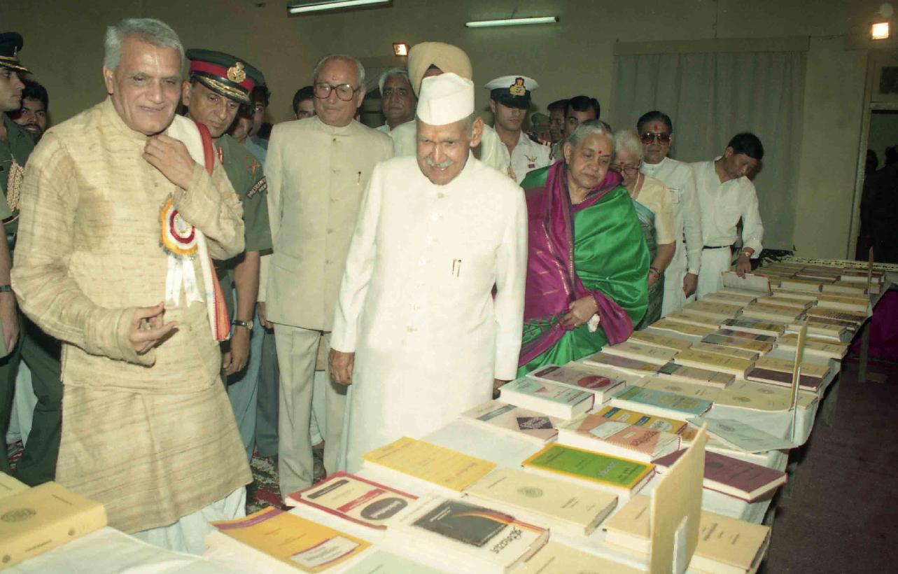 The President of India, Dr. Shankar Dayal Sharma inaugurating the Publication Building (Prakashan Bhawan) and unveiling the Statue of Pt. Kamalapati Tripathi, at Varanasi, Uttar Pradesh on August 21, 1996.