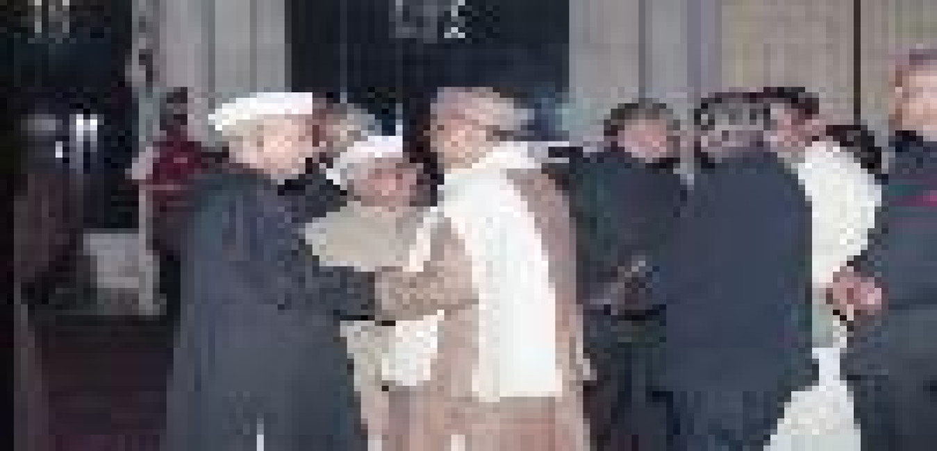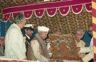 The President of India, Dr. Shankar Dayal Sharma meeting with Jainacharya Jayantsen Surishwarji Maharaj and receives Anekant Ratna, at the Jainacharya Jayanstsen Suri Foundation Trust Function, in Mumbai on January 09, 1996.