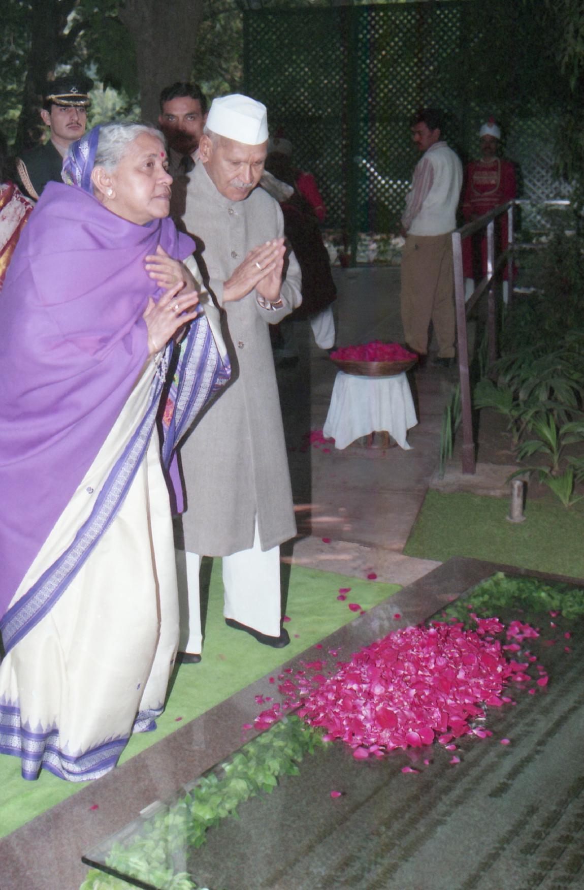 The President of India, Dr. Shankar Dayal Sharma paying Homage to Mahatma Gandhi at Rajghat in Delhi on January 30, 1996.