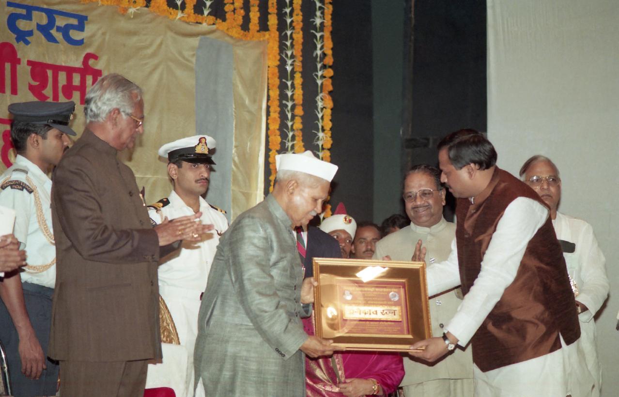 The President of India, Dr. Shankar Dayal Sharma presenting Kakasaheb Gadgil awards, at the concluding function of Kakasaheb Gadgil Birth Centenary Celebrations, at Pune on January 10, 1996.