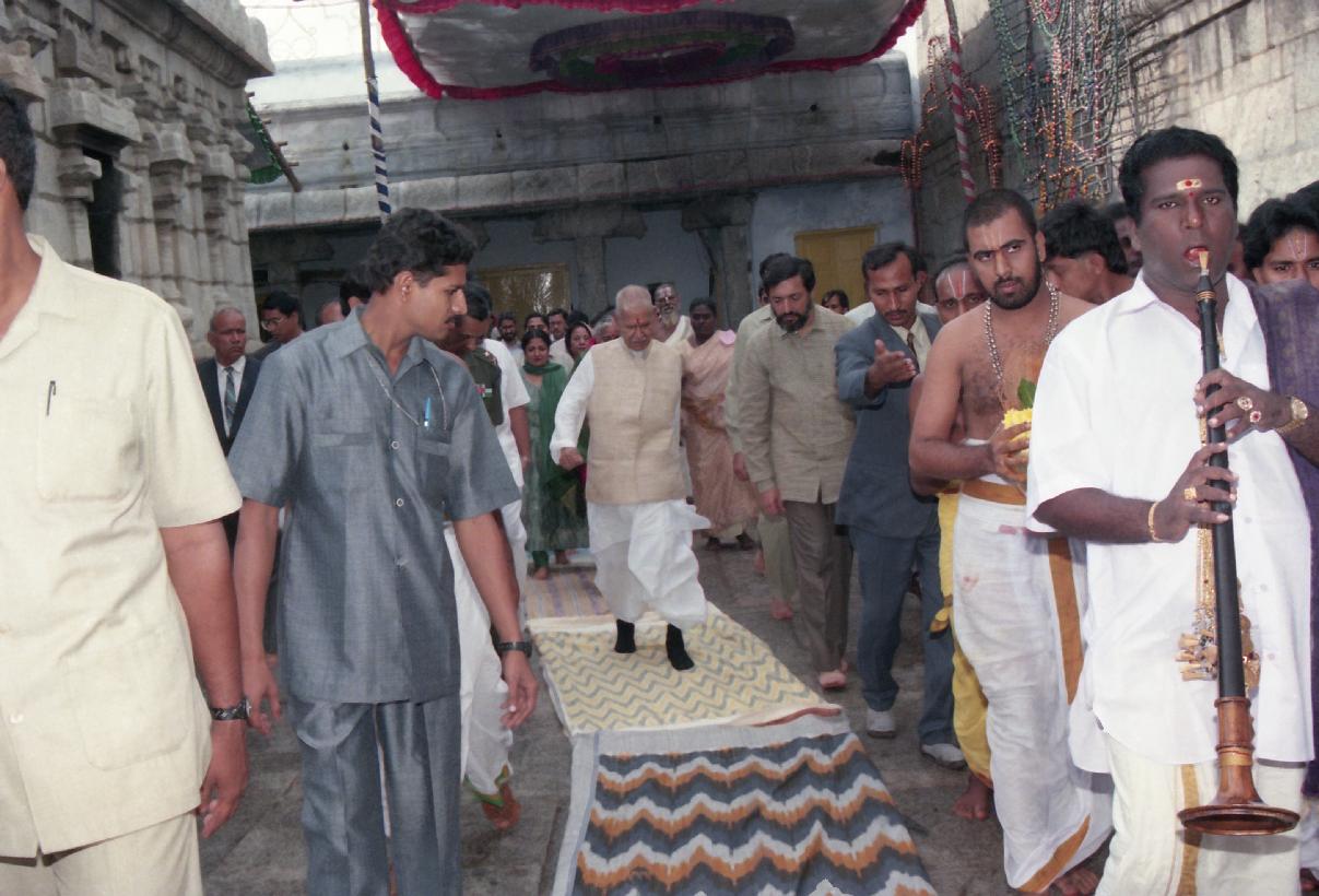 The President of India, Dr. Shankar Dayal Sharma visiting Padmavati Ammavari Temple, at Tiruchanur, Andhra Pradesh on November 24, 1995.