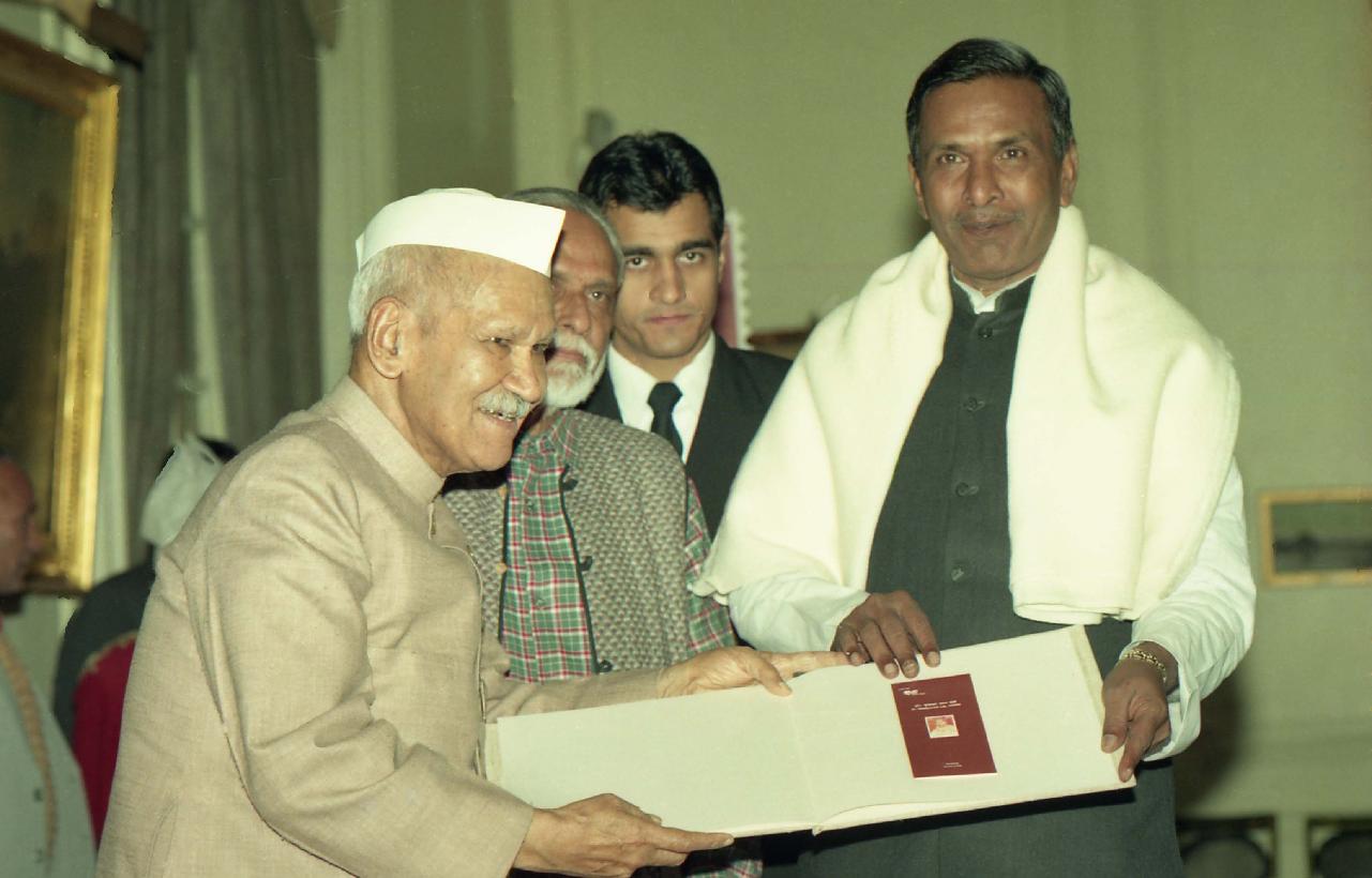 The President of India, Dr. Shankar Dayal Sharma releasing a Commemorative Stamp on Dr. Vrindavan Lal Verma at Rashtrapati Bhavan in New Delhi on January 09, 1997.