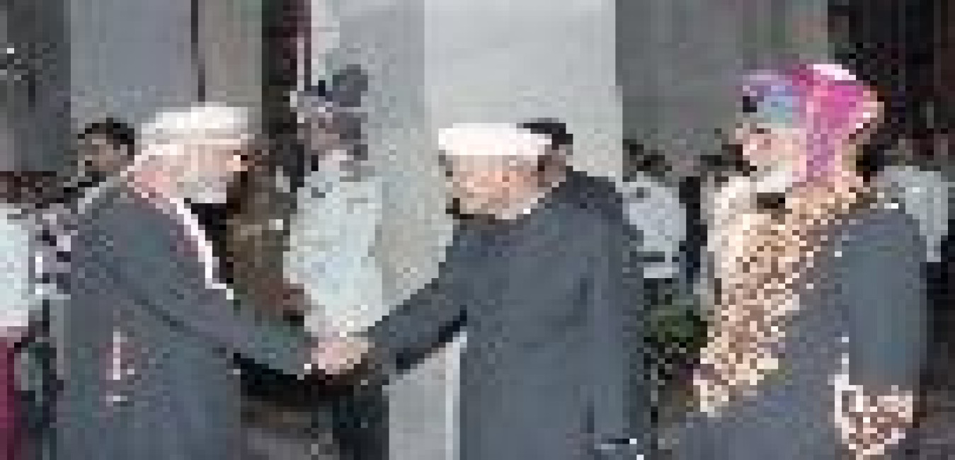 The President of India, Dr. Shankar Dayal Sharma receiving the Sultan of Oman, H.M. Sultan Qaboos Bin Said at his Ceremonial Reception, at Rashtrapati Bhavan, in New Delhi on April 01, 1997. The Prime Minister, Shri H.D. Deve Gowda is also seen.