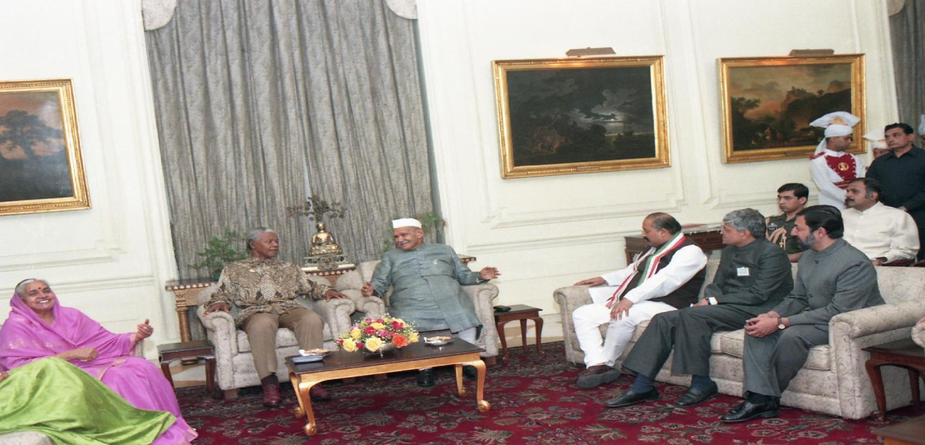 The President of India, Dr. Shankar Dayal Sharma with the President of the Republic of South Africa, H.E. Dr. Nelson R. Mandela during farewell tete-a-tete, at Rashtrapati Bhavan in New Delhi on March 28, 1997.