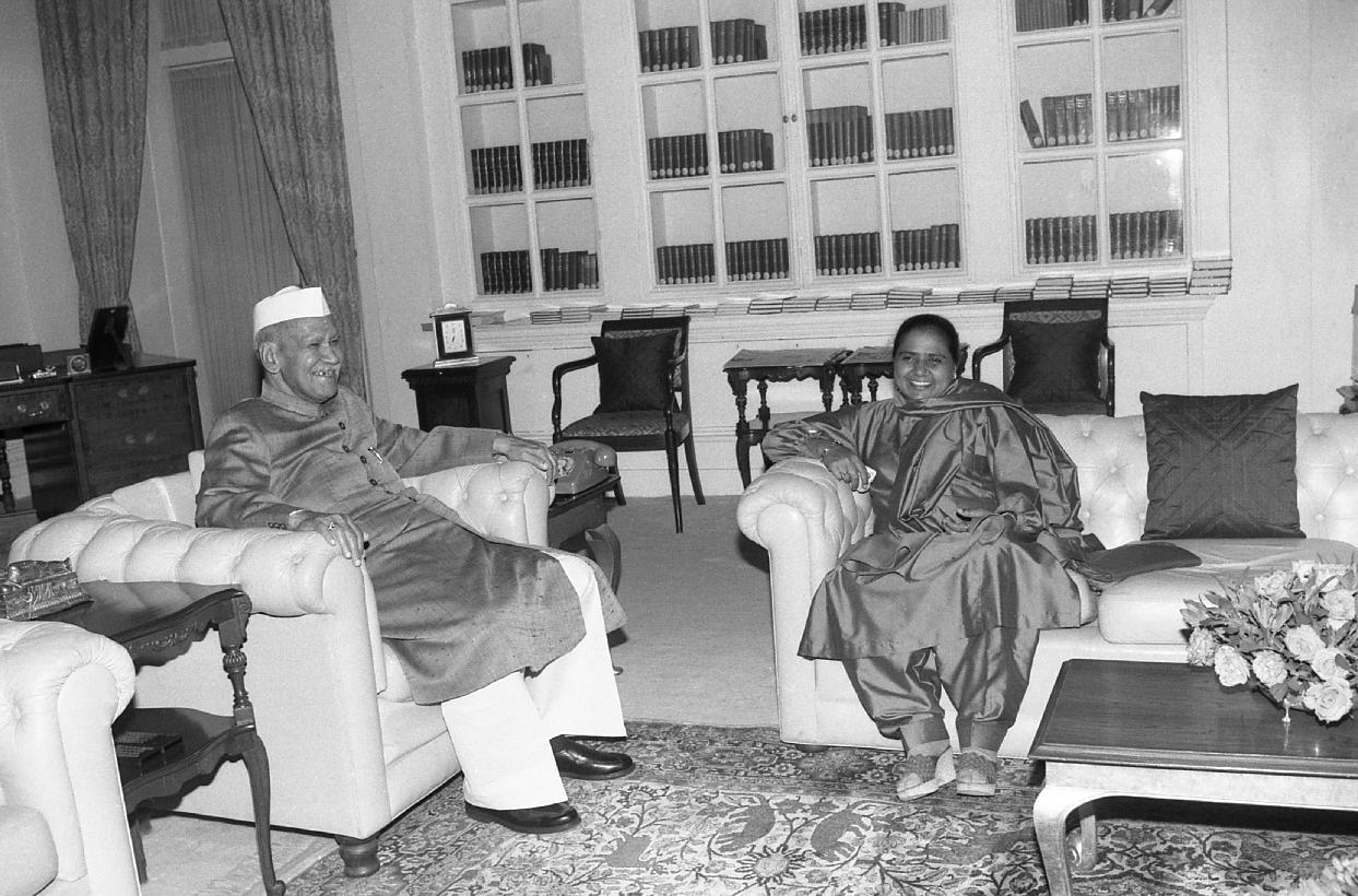 The President of India, Dr. Shankar Dayal Sharma meeting with the Chief Minister of Uttar Pradesh, Ms. Mayawati, at Rashtrapati Bhavan in New Delhi on March 30, 1997.