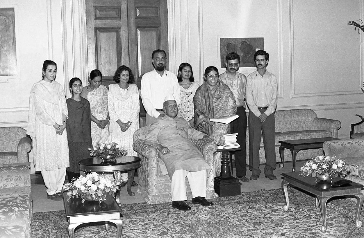 The President of India, Dr. Shankar Dayal Sharma meeting with Shri Sita Ram Gupta with others at Rashtrapati Bhavan in New Delhi on March 27, 1997.