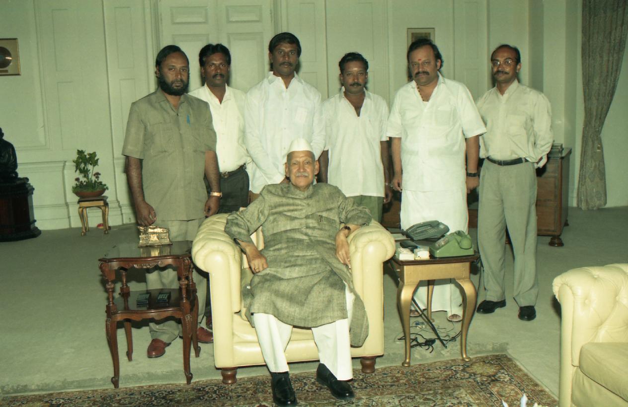The President of India, Dr. Shankar Dayal Sharma meeting with MP's from Tamil Nadu at Rashtrapati Bhavan in New Delhi on March 20, 1997.